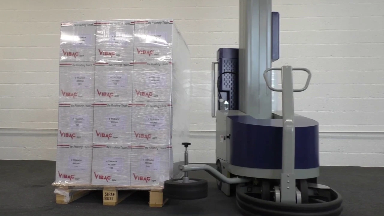 De wikkelrobot CTP-600B is een halfautomatische mobiele pallet wikkelmachine, voor het wikkelen en stabiliseren van ladingen op pallets met rekwikkelfolie. De robot is opgebouwd uit een elektrische wagen met daarop een kolom en een foliewagen voorzien van een makkelijk instelbaar 2 staps voorreksysteem van 300% of 230% voorrek.