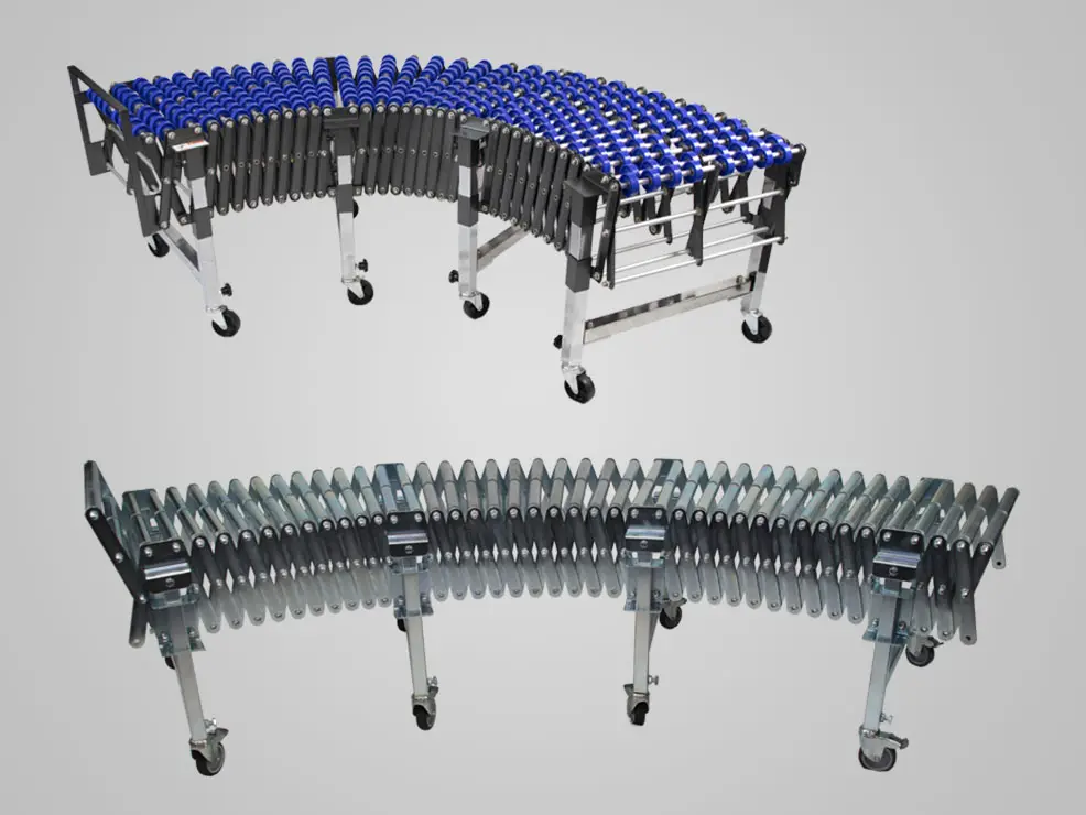 De harmonica rollenbanen met kunststof wieltjes of stalen rollen kunnen net als een harmonica in en uitgetrokken worden. Doordat de rollenbaan als een harmonica werkt is het ook mogelijk met de rollenbaan een bocht tot wel 180 graden te maken. De flexibele rollenbaan wordt ondersteund door meerdere onderstellen en is voorzien van geremde wielen. De onderstellen zijn onderling in hoogte te verstellen zodat de hoogte afgestemd kan worden op de gebruiker en bijvoorbeeld op de werkhoogte van een dozensluiter die je hiervoor kan plaatsen. Indien dit een de Witt dozensluiter betreft dan leveren wij bij de flexibele baan standaard een koppelplaat om het geheel d.m.v. beugels makkelijk aan en af te kunnen koppelen.